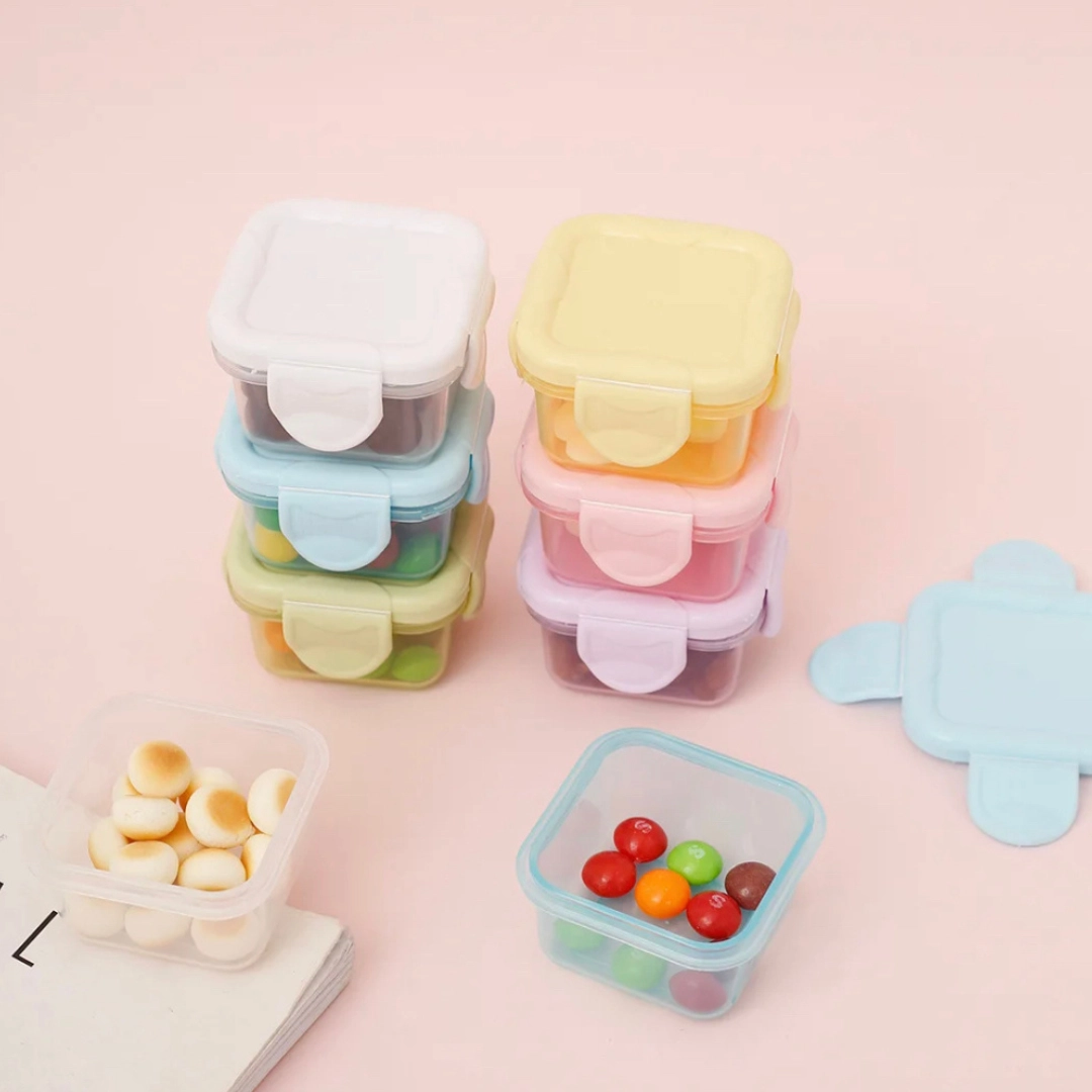 Beskrivelse Små oppbevaringsboks for mat - 4 stk fra Mum Made Yum Perfekt for saus, syltetøy, dipp eller andre tilbehør til matpakken. Eller til snacks eller babymat. Kan også brukes til å oppbevare pyntepinnene fra Mum Made Yum. Fakta: * 60ml capacity * 4 secure clips * Leakproof design * Dishwasher safe, Microwave and freezer safe * BPA free * FDA Approved Dimensjoner: 6cm x 6cm Kapasitet: 60ml per boks |